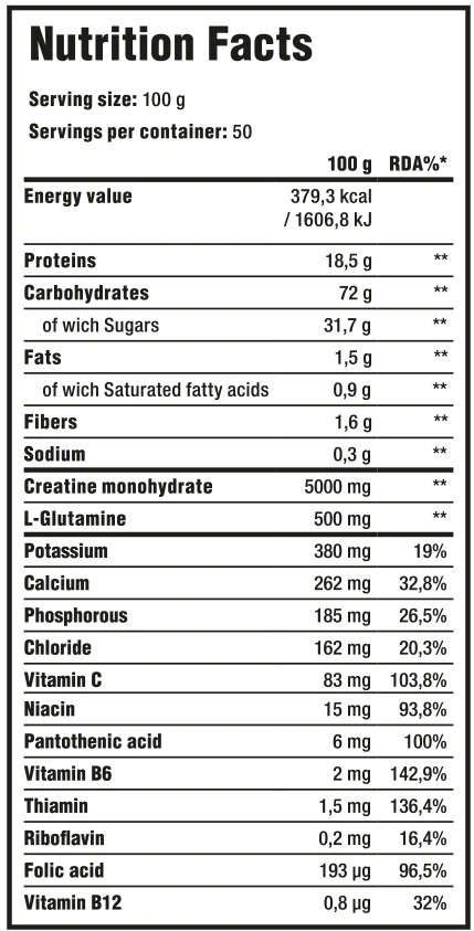 - Ce gainer contient également de la glutamine et de la taurine ajoutées, riche en vitamines.